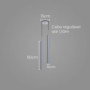 ESPECIFICAÇÕES TÉCNICAS: - Cor: Cinza - Voltagem: Bivolt 110/220V - Soquete: 2x GU10 p/ MR11 (lâmpada não inclusa) - Dimensões do Tubo: 50 cm de altura x 4 cm de diâmetro - Dimensões da Base (teto): 15 cm de diâmetro - Comprimento do Cabo: até 110 cm