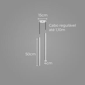 ESPECIFICAÇÕES TÉCNICAS: - Cor: Escovado - Voltagem: Bivolt 110/220V - Soquete: 2x GU10 p/ MR11 (lâmpada não inclusa) - Dimensões do Tubo: 50 cm de altura x 4 cm de diâmetro - Dimensões da Base (teto): 15 cm de diâmetro - Comprimento do Cabo: até 110 cm