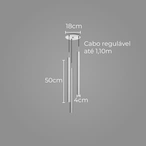 ESPECIFICAÇÕES TÉCNICAS: - Cor: Escovado - Material: Alumínio - Voltagem: Bivolt 110/220V - Soquete: 3x GU10 p/ MR11 (não inclusa) - Dimensões do Tubo: 50 cm de Altura x 4 cm de Diâmetro - Dimensões da Canopla: Diâmetro 18 cm | Furos 8,6 cm - Comprimento do Cabo: Regulável até 110cm - Peso: 800g - Garantia: 12 meses