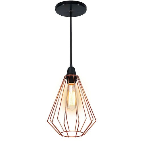 Pendente com estrutura aramada modelo CakeEstrutura em aço com pintura eletrostática CobreDiâmetro: 20cmAltura: 25cmPeso: 330 gramasSoquete E27 Padrão Fornecido com cabo de 1 metro.Design diferenciado de extrema qualidade e belezaIdeal para Escritórios, varandas, jardins, salas, sacadas, espaços gourmet, etc.