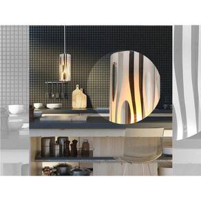 Pendente prático e decorativo, com vidro trabalhado em faixas e elipses, realçam os mais diversos ambientes.