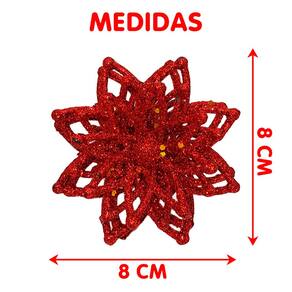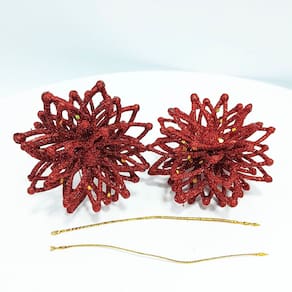 6 Conjunto com 2 Peças Flores Vermelhas com Glitter de 8cm