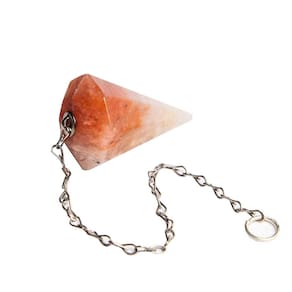Pedra: Ágata Cornalina Natural Cor das Pedras: Laranja vibrante com rajados brancos (Foto ilustrativa, as tonalidades podem variar) Corte: Pêndulo Facetado Pião com acabamento em máquina Brilho e Claridade: Brilho natural e claridade comum Tamanho da Pedra: Aproximadamente 30mm Peso da Pedra: Aproximadamente 10g Montagem: Tulipa colada + Corrente de Metal Prata (durável e resistente)