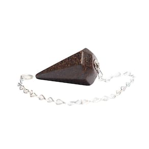 Nome: Pêndulo de Pedra Bronzita Cor: Bronze Corte: Facetado (Lapidação Manual em Pião) Brilho/Claridade: Opaco Brilhoso Medidas Aproximadas: 30mm Peso Aproximado: 10g Montagem: Tulipa colada + Corrente em Prateado Origem: Pedra Bahia, manufatura e lapidação em Cristaisdecurvelo, MG Observação: As pedras são naturais, podendo apresentar pequenas variações de tonalidade, grafismos e inclusões características de pedras autênticas de garimpo. A hidratação da pedra é realizada com óleo mineral.
