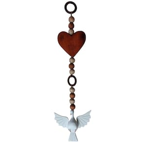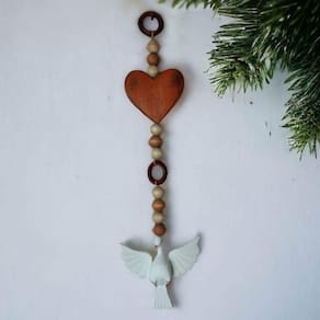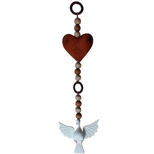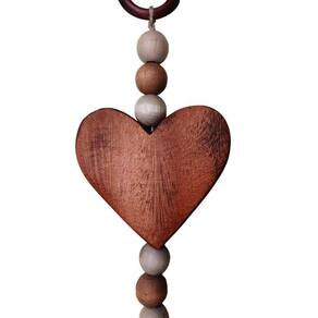 A madeira maciça, escolhida com esmero, confere durabilidade e um toque natural, proporcionando uma sensação autêntica ao toque. As miçangas decorativas, dispostas com precisão, adicionam uma elegância sutil, enquanto o adorno em formato de coração evoca sentimentos de amor e devoção.
