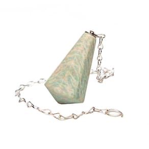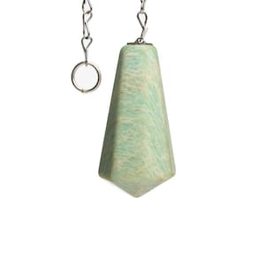 Descubra o poder transformador do Pêndulo de Amazonita. Esta peça única, com lapidação manual, apresenta um formato piramidal invertido, o que garante maior precisão e equilíbrio ao ser manuseado. Seu design exclusivo concentra o peso no eixo central, proporcionando maior estabilidade durante a prática de radiestesia e radiônica, facilitando a captação de energias e respostas do inconsciente.