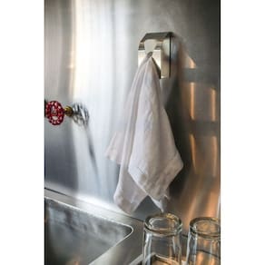 A toalha é um item essencial em diversos ambientes não é mesmo? Quando você prepara aquela receita especial ou quando você está organizando a área de serviço e o banheiro, a toalha tem que estar sempre à mão, facilitando a sua rotina. O pendurador de toalha foi pensado para agregar praticidade para cozinhas, lavabos, banheiros e áreas de serviço, somando um toque minimalista e elegante que deixa o espaço organizado e clean. A praticidade da fixação com fita dupla face dá liberdade para que seja instalado sem furações, e o sistema de encaixe da toalha foi projetado para facilitar seu uso nas atribuições diárias. 6483 - 50 x 80 x 30mm As medidas são apresentadas em milímetros, seguindo o padrão: LxAxP (Largura x Altura x Profundidade)