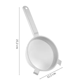 Conjunto com 6 unidades. A Peneira Plástica de 12cm é uma ferramenta essencial para qualquer cozinha. Com seu tamanho médio, ela é perfeita para peneirar farinha, açúcar e outros ingredientes secos, garantindo uma textura suave e uniforme nas suas receitas. Fabricada em plástico de alta durabilidade e livre de BPA, esta peneira é segura para a saúde e pode ser lavada na lava-louças, tornando as tarefas de limpeza muito mais fáceis. Sua alça ergonômica proporciona conforto durante o uso, tornando as tarefas culinárias mais rápidas e eficientes. Leve mais praticidade para a sua cozinha com esta peneira indispensável.Material: polipropilenoComprimento: 25 cm / Largura: 12 cm / Altura: 7 cm