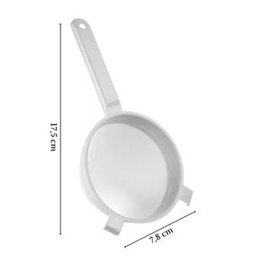 Conjunto com 12 unidades. Mantenha a precisão na sua cozinha com a nossa Peneira Plástica de 7cm. Compacta e prática, esta peneira é ideal para pequenas tarefas culinárias, como peneirar açúcar de confeiteiro, cacau em pó e ervas secas. Feita de plástico resistente e durável, esta peneira é livre de BPA, garantindo segurança para você e sua família. Além disso, ela pode ser lavada na lava-louças, proporcionando ainda mais praticidade no seu dia a dia. Sua alça ergonômica proporciona um manuseio confortável, facilitando o trabalho na cozinha. Adquira a sua e descubra a diferença que um utensílio de qualidade pode fazer no seu cotidiano.Material: polipropilenoComprimento: 18 cm / Largura: 8 cm / Altura: 4 cm