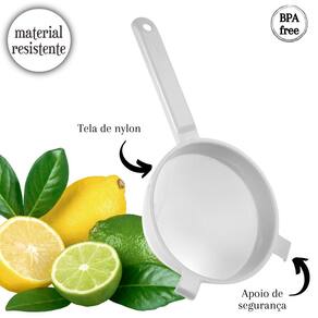 Conjunto com 6 unidades. Mantenha a precisão na sua cozinha com a nossa Peneira Plástica de 7cm. Compacta e prática, esta peneira é ideal para pequenas tarefas culinárias, como peneirar açúcar de confeiteiro, cacau em pó e ervas secas. Feita de plástico resistente e durável, esta peneira é livre de BPA, garantindo segurança para você e sua família. Além disso, ela pode ser lavada na lava-louças, proporcionando ainda mais praticidade no seu dia a dia. Sua alça ergonômica proporciona um manuseio confortável, facilitando o trabalho na cozinha. Adquira a sua e descubra a diferença que um utensílio de qualidade pode fazer no seu cotidiano.Material: polipropilenoComprimento: 18 cm / Largura: 8 cm / Altura: 4 cm
