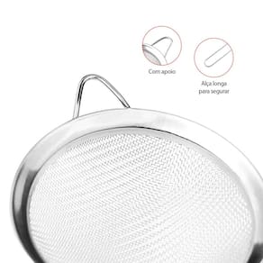 A peneira é desenvolvida em aço inox, o que torna a peça leve, prática e muita fácil de limpar. Um dos utensílios domésticos que toda cozinha, seja ela profissional ou não, tem em comum, são as peneiras. Ideais para separar um alimento do outro de forma rápida e simples, as peneiras são muito conhecidas na confeitaria. Fabricada com material de alta qualidade e resistência, ela não oxida e não absorve o sabor ou cheiro de alimentos. A Peneira Inox é perfeita para quem procura utensílios com alto nível de higienização e sem contaminação cruzada com os alimentos.