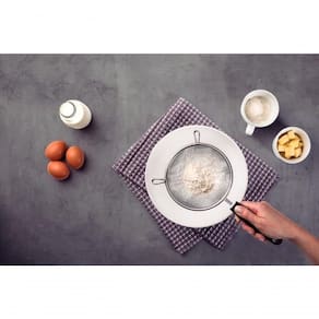Peneira de aço inox com suporte para apoio em outros utensí cabo de polipropileno possui furo passante possibilitando que seja pendurado na sua ílio ideal para peneirar farinhas ou coar chás, sucos de frutas e ir à máquina de lavar louças facilitando seu dia a dia. Ean: 7891112107106