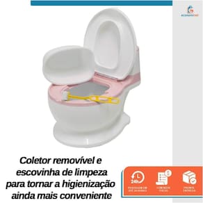 O Penico Privadinha Flush da Baby Style é um penico em formato de privadinha, projetado para crianças com 6 meses ou mais durante a transição para o uso do vaso sanitário. Ele possui um reservatório para papel ou lenços umedecidos, um assento confortável e uma função de descarga com barulho realista, tornando a experiência mais divertida e envolvente para a criança. Além de facilitar a independência da criança, o penico cria memórias positivas durante essa fase crucial do desenvolvimento.