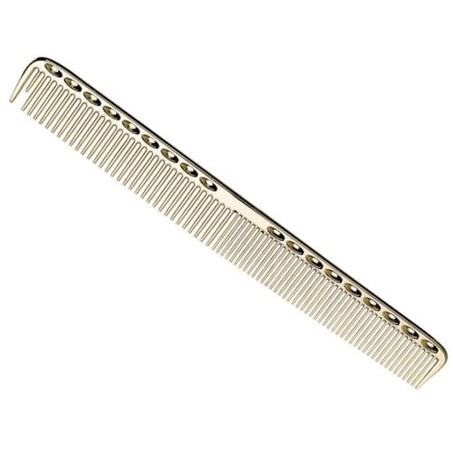 Pente De Corte Metal Alumínio Separador Mecha Para Barbeiro e Cabeleireiro 21,5 Cm Cor: Dourado Pente desenvolvido nos mais altos níveis de qualidade e resistência ao calor para barbeiros e cabeleireiros. Feito de alumínio metal antiestético e indicado para cortes de cabelo comprido e curto.
