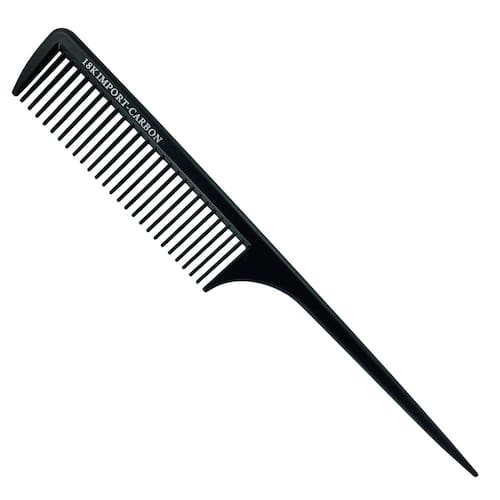 Pente de carbono com cabo pontiagudo. Indicado para as mais diversas específicas: desembaraçar, separar mechas, pentear. ou doméstico. Material resistente e de fácil higienização. Resistente a substâncias, como tinturas, químicas, entre outros componentes. Dimensões do Produto: 236 x 33mm Marca: Não Informado Ean: 7898904360558