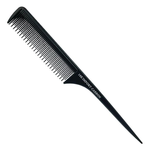 Pente profissional de carbono com cabo pontiagudo. Indicado para as mais diversas específicas: desembaraçar, separar mechas, pentear. ou doméstico. Material resistente e de fácil higienização. Resistente a substâncias, como tinturas, químicas, entre outros componentes. Dimensões do Produto: 233 x 27mm Marca: Não Informado
