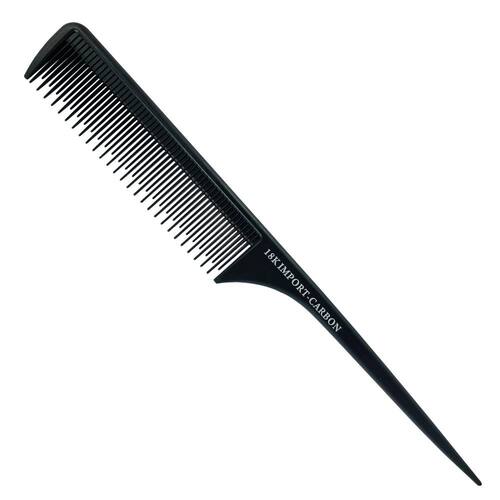 Pente profissional de carbono com cabo pontiagudo. Indicado para as mais diversas específicas: desembaraçar, separar mechas, pentear. ou doméstico. Material resistente e de fácil higienização. Resistente a substâncias, como tinturas, químicas, entre outros componentes. Dimensões do Produto: 233 x 27mm