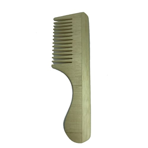 Pente de madeira com cabo, desembaraça sem deixar volumoso e não agride os fios, não enrosca ou quebra o cabelo. Além disso, os benefícios são, diminuir o frizz, deixa os fios alinhados, deixa brilhoso e saldável.