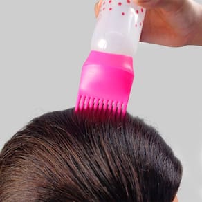 Com capacidade de 180ml, basta fazer a aplicação nos fios enquanto penteia o cabelo, graças ao design integrado com pente.