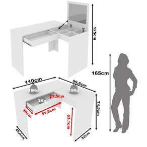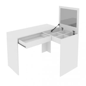 Apresentamos a Penteadeira para Canto PE2020, uma solução prática e sofisticada para organizar seus itens de beleza. Ela dispõe de uma gaveta e uma abertura basculante, proporcionando espaço para armazenar maquiagem, anéis, cremes e pulseiras com facilidade. O espelho de 3mm integrado é perfeito para o seu dia a dia, e o material em MDP com acabamento em pintura UV garante durabilidade e um acabamento impecável.