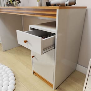 A Penteadeira Charlotte, com 1 porta e 1 gaveta, é a combinação perfeita de elegância e funcionalidade para o seu espaço de beleza. Seu design moderno oferece um amplo espaço para organizar maquiagens, acessórios e outros itens de forma prática e acessível. A gaveta é ideal para pequenos objetos, enquanto a porta proporciona mais espaço para armazenamento, mantendo o ambiente sempre organizado. Além de ser uma peça decorativa charmosa, é extremamente funcional, complementando qualquer quarto ou closet com estilo. A Penteadeira Charlotte traz sofisticação e praticidade ao seu dia a dia! Acabamento da Gaveta: Pintura Acabamento da Porta: Pintura Acompanha Banqueta: Não Ambiente Principal: Quarto Complexidade da Montagem: Média: pode ser montado por mais de uma pessoa e/ou necessite de maior conhecimento para montagem Cor: Off White/Naturalle Cor do Produto: Off White/Naturalle Escala de Brilho: Semi-Brilho Escala de Brilho da Gaveta: Semi-Brilho Escala de Brilho da Porta: Semi-Brilho Gaveta com Chave: Não Itens Inclusos: 1 Penteadeira e manual de montagem. Manual de Montagem e Instalação: https://cdn2.madeiramadeira.com.br/atributo/mavaular/2313151-732-17261460540879.pdf Material da Gaveta: MDP Material da Porta: MDP Material do Puxador da Gaveta: Alumínio Material do Puxador da Porta: Alumínio Material Principal: MDP Necessita Montagem: Sim Origem do Produto: Nacional Peso: 23,8 kg Peso Máximo por Gaveta: 5 kg Possui iluminação: Não Possui Moldura: Não Possui Pés: Não Possui Porta Objetos: Não Possui Portas: 01 Possui Prateleiras: Não Possui Vidro: Não Recomendações de Uso, Manutenção e Limpeza: Limpar com pano macio e levemente umedecido. Não utilizar solventes a base e de inflamáveis. Não utilizar produtos abrasivos. Sapatas Niveladoras: Não Sistema de Montagem: Parafusos. Suporta Até (kg): 40 kg Tampo Basculante: Não Tipo de Corrediça da Gaveta: Metálica Telescópica Tipo de Dobradiça/Corrediça da Porta: Metálica Tipo de Porta: Bater Tipo de Puxador da Gaveta: Externo Tipo de Puxador da Porta: Externo