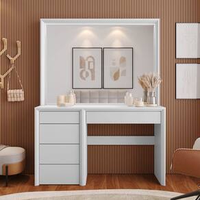 Transforme sua rotina de cuidados em um momento especial com esta penteadeira de design moderno e elegante. Com linhas retas e acabamento sofisticado, ela combina tons amadeirados com cores suaves, criando um visual acolhedor e contemporâneo para o quarto. O espelho amplo garante ótima visualização, enquanto as gavetas espaçosas facilitam a organização de maquiagens, acessórios e itens pessoais. Funcional e charmosa, oferece conforto no uso diário e valoriza a decoração do ambiente, unindo praticidade, beleza e durabilidade em um único móvel.