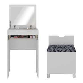 Transforme seu espaço com estilo e praticidade! A Penteadeira 54cm com Espelho 1 Gaveta 1 Porta Basculante e Puff Multimóveis CR35251 é a escolha perfeita para quem busca um cantinho da beleza no quarto. Produzida com MDP de 15mm com pintura UV, garante durabilidade e resistência sem igual. Com 1 gaveta equipada com puxador usinado e corrediça metálica, oferece uma experiência suave ao abrir e fechar, mantendo seus itens sempre organizados. O design inteligente inclui 1 porta com pistão e espelho de 3mm, criando um espaço perfeito para suas maquiagens e joias. O toque final é o puff com tampo estofado em espuma D33 e acabamento em tecido, proporcionando conforto. Além disso, o puff possui rodízios que agregam praticidade ao movimentá-lo e encaixá-lo na penteadeira, otimizando seu ambiente.