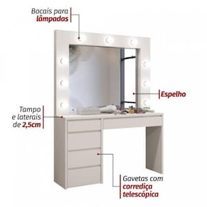 Itens Inclusos: 1 Penteadeira Camarim e Manual de Montagem