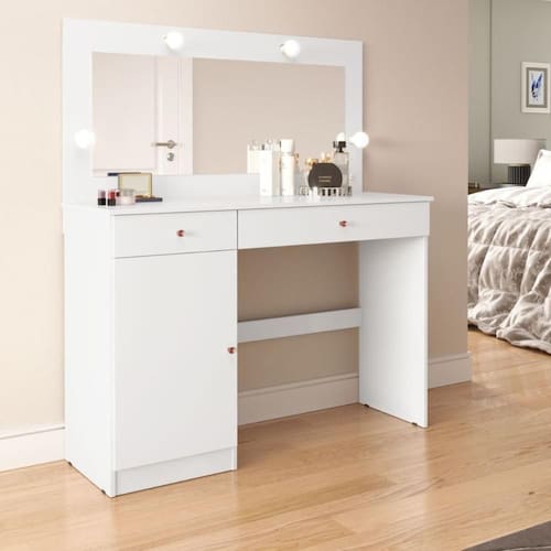 A Penteadeira Camarim é tudo o que você precisa para se arrumar com estilo, elegância e conforto. Proporcionando organização e facilidade para o seu momento de beleza.