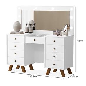 Dimensões da Penteadeira: Altura: 145 cm Largura: 136,5 cm Profundidade: 45 cm
