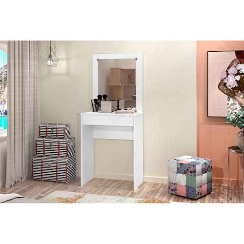 A Penteadeira Sofia - J&A Móveis é ideal para manter o ambiente organizado de maneira charmosa e prática. Com ampla gaveta e espelho, vai te ajudar a fazer aquela maquiagem, seja para o dia a dia ou para algum evento. Seu design clean facilita que ela seja combinada com diversos outros estilos de móveis.