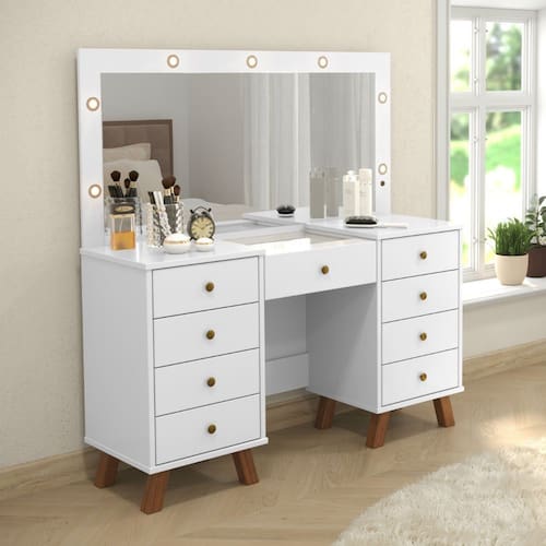 A Penteadeira Eloá da Patrimar deixará seu quarto um charme. Fabricada em MDF com nove gavetas sendo uma com divisórias para guardar maquiagem e pequenos objetos.