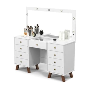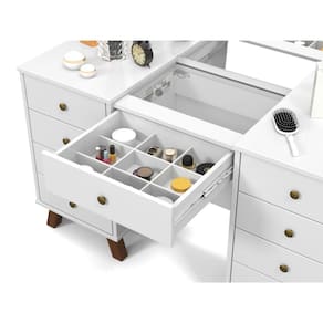 Características: Estrutura em MDF Puxadores em metal Corrediças telescópicas 9 Gavetas, sendo 1 com Colmeia Vidro em 4mm Iluminação em LED Pés em madeira maciça Suporta 4 kg na base de MDF Suporta até 2 kg sobre o vidro Espelho
