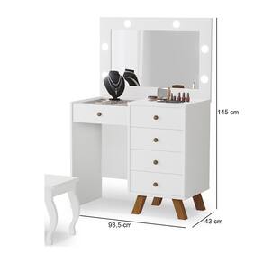 Dimensões da Penteadeira: Altura: 145 cm Largura: 93,5 cm Profundidade: 43 cm