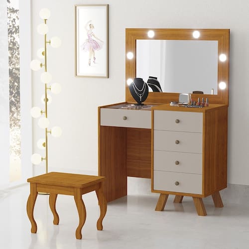 Itens Inclusos: 1 Penteadeira 1 Banqueta