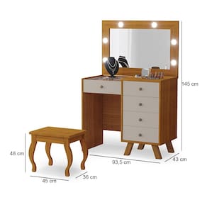 Dimensões da Penteadeira: Altura: 145 cm Largura: 93,5 cm Profundidade: 43 cm
