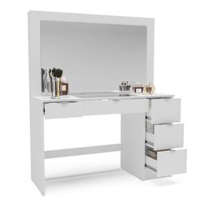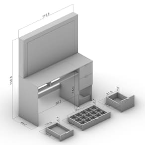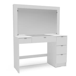 Características: 5 Gavetas Acabamento em Pintura UV Liso Com Espelho Estrutura MDP 15mm Peso Suportado 3 até 5kg Não acompanha puff Vidro no visor da Gaveta