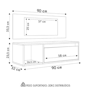 Bancada (L x A x P): 90 x 23,5 x32 cm.