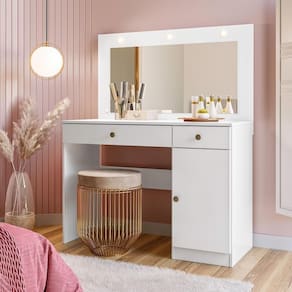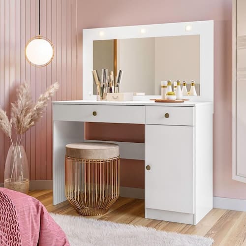A Penteadeira Camarim Bella vai deixar seu ambiente moderno e aconchegante. Ela conta com espelho, 3 spots de LED, uma porta e 2 gavetas. A Penteadeira Camarim Bella é ideal para você que gosta de manter seus pertences sempre em ordem com estilo e bom gosto.