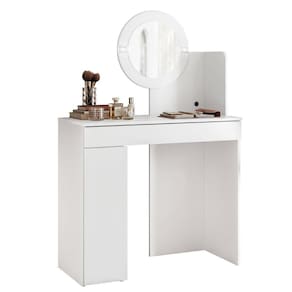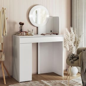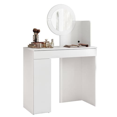 Com Design Moderno e elegante, ela conta com uma gaveta equipada com corrediças telescópicas, proporcionando maior suavidade e durabilidade no deslizamento, ideal para armazenar itens de maquiagem e acessórios. Além disso, a peça possui uma porta convencional com dobradiças metálicas, que garantem resistência e facilidade de uso, oferecendo um espaço extra para armazenar produtos de forma organizada. Para atender às necessidades de quem ama se arrumar com detalhes de bom gosto, a Penteadeira conta com duas luminárias de LED, que oferecem uma iluminação suave e eficiente, ideal para realizar maquiagem e cuidados com a pele. As luminárias têm um design sofisticado, sendo integradas à estrutura do móvel e proporcionando um toque de glamour ao ambiente. A estrutura da Penteadeira Camarim é fabricada em MDP com pintura UV, garantindo um acabamento resistente, além de conferir um aspecto moderno e sofisticado. As divisórias organizacionais internas são um diferencial, permitindo a separação eficiente dos itens, mantendo tudo no lugar e facilitando o acesso. A combinação de funcionalidade e design torna essa penteadeira camarim a escolha ideal para quem deseja um Quarto prático e bem organizado.