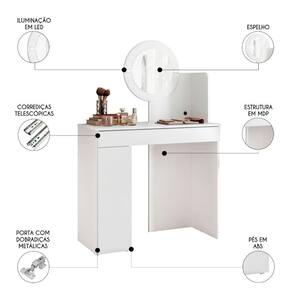 A Penteadeira Camarim Escrivaninha com LED Sulla A02 Branco, da Mpozenato é a escolha perfeita para quem busca praticidade, organização e estilo em um só móvel.