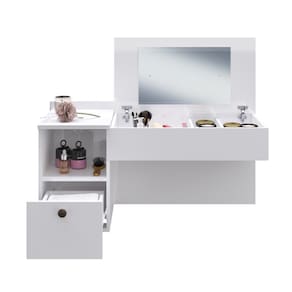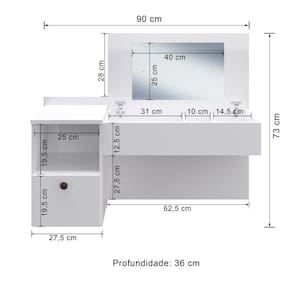 MDFPara quem busca várias soluções em um único produto a Penteadeira MU111 é a melhor opção. São diversas possibilidades em um só móvel, penteadeira com espelho e nicho para separação, escrivaninha compacta e muito prática, e ainda pode ser uma mesa de cabeceira com gaveta. Fácil instalação e feito com materiais resistentes e bem-acabados. Solução para seu quarto, sala ou escritório.