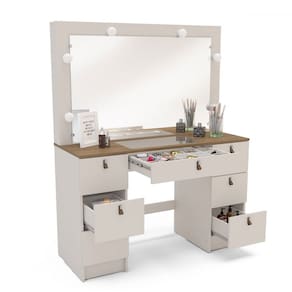 O(a) Penteadeira Camarim França 7 Gavetas com Vidro Off White/Freijó - Politorno é produzido em MDP na escala de brilho Semi-Fosco, e possui um grau de dificuldade de montagem: Médio.