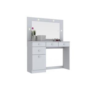 Penteadeira Camarim Juvenil Chanel C/ 1 Porta E 4 Gavetas C/ Espelho Branco - Henn