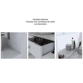 CARACTERÍSTICAS DE MÓVEIS Tipo de Estrutura do Móvel - MDF/MDP Tipo de Pintura - UV Tipo de Acabamento da Pintura - Alto Brilho/Fosca Características de móveis - Iluminação LED Tipo de puxador - ABS/PVC Quantidade de Gavetas - 4 Gavetas Diferenciais da Gaveta - c/ Corrediças Metálicas Quantidade de Portas - 1 Porta de Abrir Garantia - 3 meses