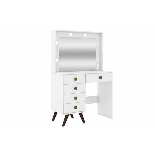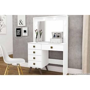 Penteadeira MSM 437 c/ 5 Gavetas e Espelho Branco - Movelbento