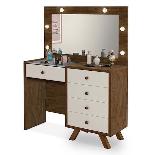 A Penteadeira Camarim Luna é um móvel bastante útil que vai agregar beleza e sofisticação ao seu quarto. Possui estrutura em MDF de excelente qualidade que proporciona maior durabilidade e resistência ao produto, conta com 5 gavetas e amplo espaço interno para maior organização dos seus pertences.