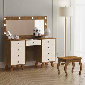 Dimensões: Tamanho da Penteadeira (L x A x P): 136,5 x 145 x 45 cm Tamanho da Banqueta (L x A x P): 45 x 46,5 x 36 cm