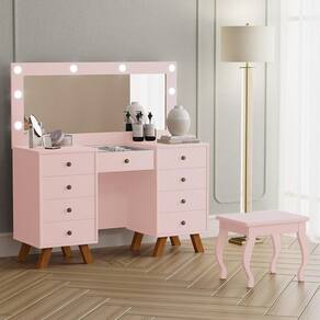 A Penteadeira Camarim Mila combina charme e funcionalidade para seu ambiente. Produzida em MDF com pintura UV, possui 9 gavetas com corrediças telescópicas, incluindo uma gaveta central com colmeia e tampo de vidro para uma organização sofisticada. Os puxadores em metal com acabamento envelhecido adicionam um toque clássico ao design, enquanto as 8 lâmpadas de LED proporcionam uma iluminação ideal para o seu ritual de beleza. Conta com espelho incluso e pés de madeira de reflorestamento, unindo durabilidade e sustentabilidade. A Banqueta para Penteadeira Camarim foi pensada e produzida para dar mais charme e beleza para seu espaço, possui pés torneados e estrutura em MDF traz beleza, resistência e durabilidade.