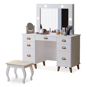 Penteadeira Camarim New Seul com Banqueta Almofadada Branco - Luapa